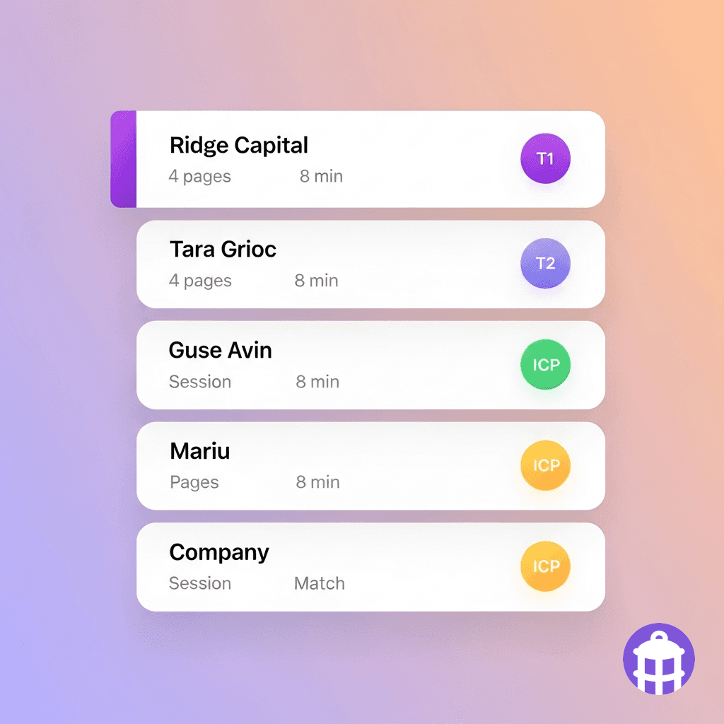 Companies are identified in real time, scored by intent, and routed to the right rep with contacts and a suggested opener.