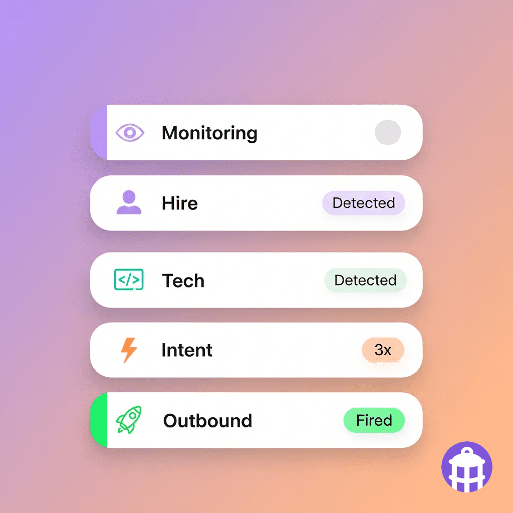 Signals monitored continuously. Outbound triggers automatically when thresholds hit.